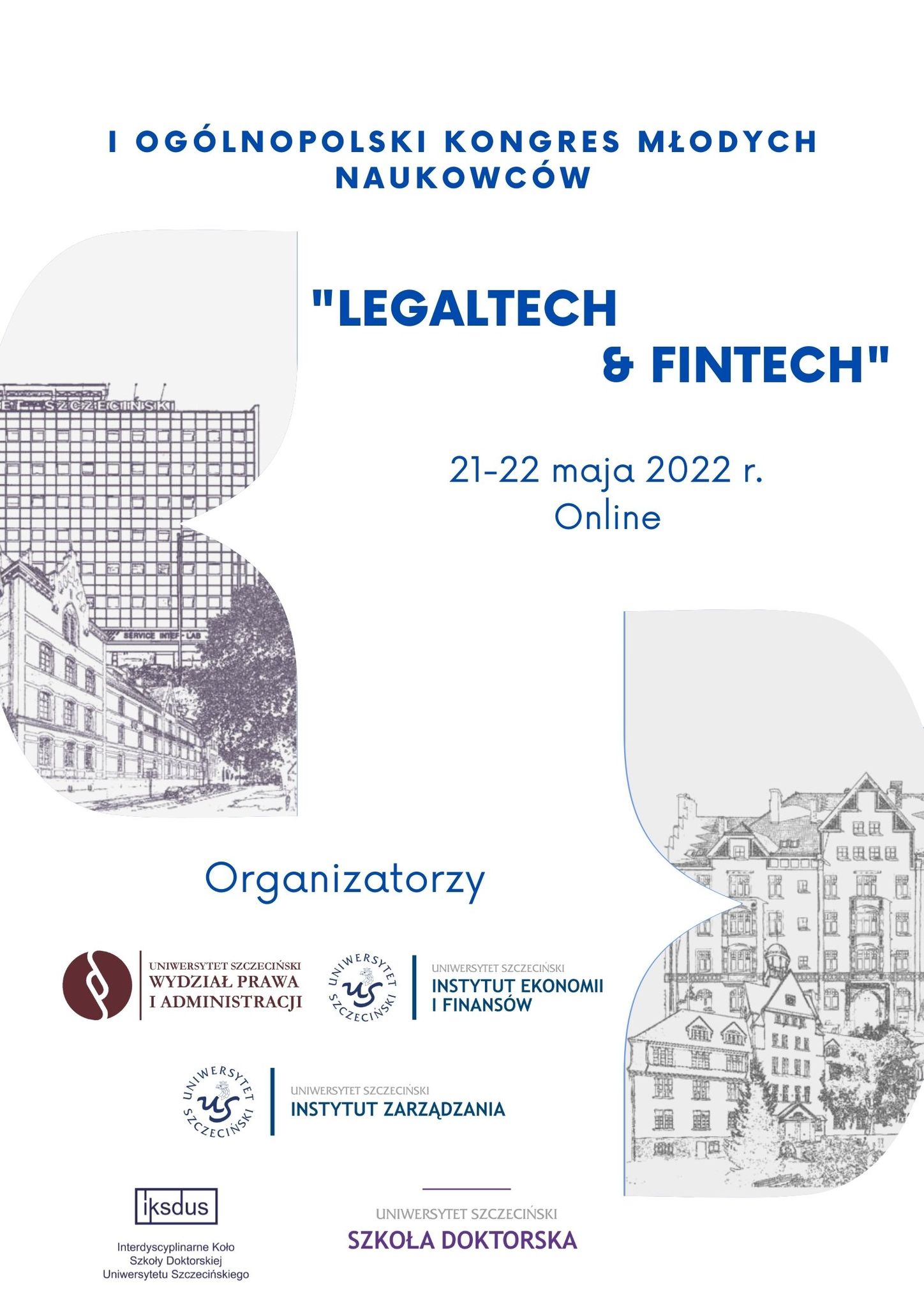 Interdyscyplinarne Koło Szkoły Doktorskiej Uniwersytetu Szczecińskiego, Szkoła Doktorska Uniwersytetu Szczecińskiego, Wydział Prawa i Administracji Uniwersytetu Szczecińskiego, Instytut Ekonomii i Finansów Uniwersytetu Szczecińskiego oraz Instytut Zarządzania Uniwersytetu Szczecińskiego zapraszają Państwa do udziału w I Ogólnopolskim „Szczecińskim Kongresie Młodych Naukowców LegalTech&FinTech”.